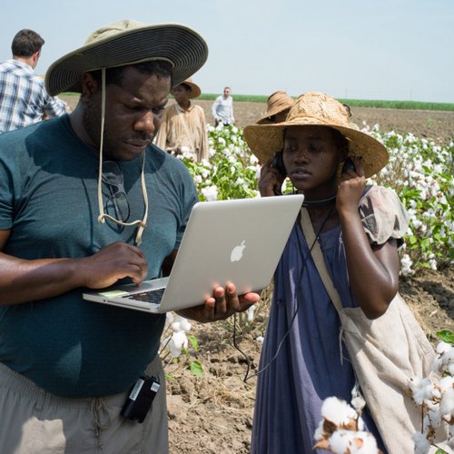 photo du bandeau : Steve McQueen et Lupita Nyongo dans un champ de coton, sur le tournage de 12 Years a Slave.