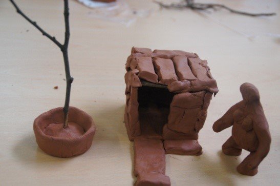 Les apprenants ont d’abord participé à une exposition collective d’objets personnels, « Chez moi, chez soi », au sein de la Maison des Enfants d’Anderlecht. Lors de cette première étape, chaque matériau a été nommé. Afin d‘enrichir le vocabulaire des participant.e.s, les étapes suivantes ont été de nommer chaque objet, chaque action, chaque étape afin d’alimenter et de concevoir des réalisations en modelages.