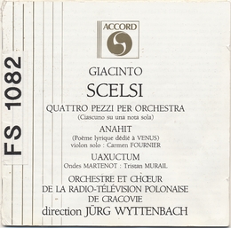 QUATTRO PEZZI PER ORCHESTRA / ANAHIT / UAXUCTUMGiacinto SCELSI Jürg WYTTENBACH, ORCHESTRE RAD.TEL.POLONAISE DE CRACOVIEFS1082 / 1989Musique classique -