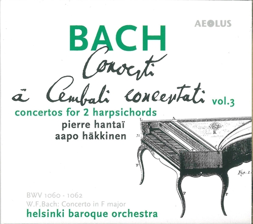 Elève de Bob van Asperen et de Pierre Hantaï, Aapo Häkkinen a bénéficié des conseils et encouragements de Gustav Leonhardt. Lauréat du Concours de clavecin de Bruges, il est en outre apprécié pour ses interprétations de musique italienne dont il a publié une série de partitions consacrée à la musique florentine pour clavier. Ce troisième volume en compagnie de Pierre Hantaï et d'une phalange orchestrale restreinte comprend trois concertos pour deux clavecins de Bach et un duetto pour clavecins de Wilhelm Friedemann Bach. Cette dernière oeuvre date de 1733 environ, époque où le jeune homme vient d'être engagé comme organiste à la Sophienkirche de Dresde.
