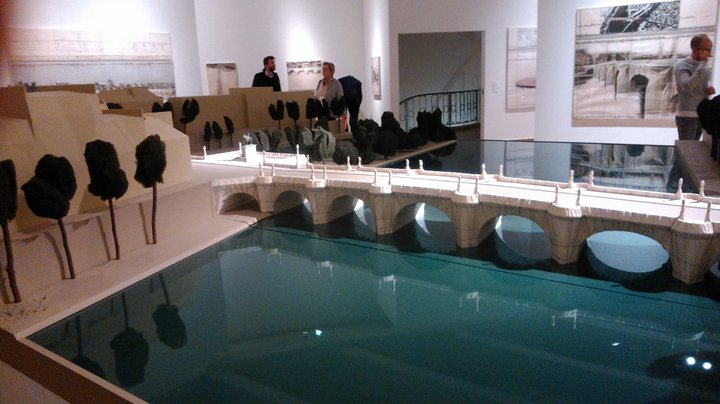 Au sein de la rétrospective des projets urbains de Christo (ING Art Center, Bruxelles - jusqu'au 25 février 2018), se trouve une salle dédiée à l’emballage du pont Neuf : autour d’une vaste maquette sont exposés une dizaine de grands dessins préparatoires – pour la plupart des objets hybrides, mêlant dessin, collage (parties de plans et photos coloriées) et toile cousue. Ce sont ces travaux préparatoires qui ont entièrement assuré le financement de l’entreprise artistique, depuis la confection de la toile à Armentières (un ancien fleuron de l’industrie textile, situé dans le Nord de la France) jusqu’à son déploiement par différents corps de métier dirigés par douze ingénieurs (200 personnes œuvrant sur le site).