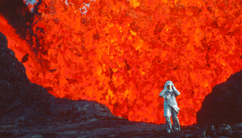 Les archives qui constituent le principal matériau du documentaire sont précieuses si ce n’est uniques. Parcourant le monde tout au long de l’année, partageant leur temps entre conférences et expéditions, le couple n’avaient qu’un seul objectif et c’était que leur séjour au cœur des éléments déchainés puisse être transmis. Bien qu'ayant renoncé à la carrière académique, Maurice était titulaire d'un DEA en géologie et détenteur d'un fond d'archives impressionnant, collectionnant tout ce qui avait trait à l'objet de sa passion : livres, œuvres d'art, films. Géochimiste de formation, Katia fut à l'origine du premier chromatographe, un analyseur de gaz portatif. Ainsi leur regard n'avait rien de celui du simple amateur. Seulement ils voulaient être libres d’arpenter la terre en prenant des risques. Les scientifiques qui préféraient rester à distance leur surent gré d'un apport conséquent de données et d'images d'une valeur inestimable, tant sous l'angle artistique que scientifique. Après eux, il n'y eut que les drones pour prendre la relève. Une machine aura-t-elle jamais l'intelligence d’un œil éperdu d’admiration ?