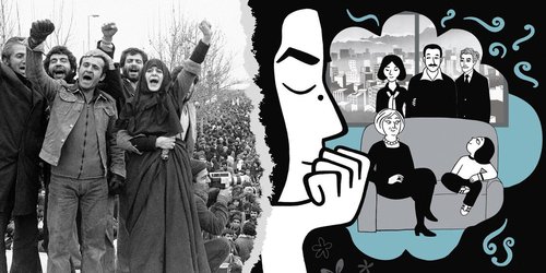 Tout au long des 4 tomes de la bande dessinée Persepolis, dont le film propose un subtil condensé, Marjane Satrapi met en scène son enfance à Téhéran et le début de son exil en Europe. Suivant le déroulé d’un roman de formation, les péripéties s’enchaînent comme autant de moments décisifs qui, partant de la révolution de 1979, impriment en relief les effets concrets d’une politique dictatoriale sur le quotidien d’un peuple : délation, corruption, disparitions... Sous ce même versant déceptif, il est aussi très clair que l’exil n’est pas la panacée qu’on voudrait. Au vertige du déracinement vient alors s’ajouter un insurmontable sentiment de culpabilité vis-à-vis des proches restés au pays. Pour Marjane Satrapi, partir en Allemagne à l’âge de 14 ans sans ses parents n’est rien d’autre qu’une douloureuse épreuve. Le séjour se conclut d'ailleurs par une grave dépression. Ce n’est que bien plus tard, en 1994, au terme d’un cursus d’études suivies en Iran, que Marjane s’exilera définitivement en France, pays où elle réside actuellement.