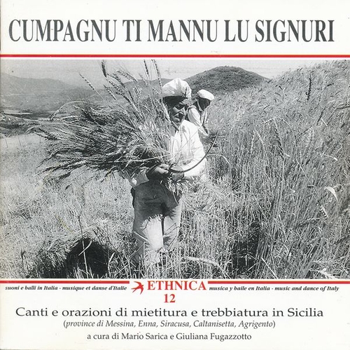 Titre complet: "Ethnica 12, Cumpagnu ti Mannu lu Signuri - Canti e Orazioni di Mietitura e Trebbiatura in Sicilia." Chants traditionnels a cappella d'hommes liés à la récolte et au battage du grain. C'est une tradition qui se perd et qui renvoie à des rituels pré-chrétiens et chrétiens. Livret en italien, avec les paroles. (ASDS)