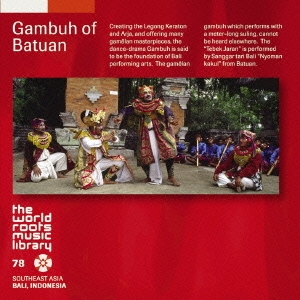 Enregistrements en 1990 à Pura Samuan Tiga, Bedulu, Gianyar. Tradition savante du drame dansé Gambuh, à l'origine de beaucoup d'autres styles. Caractérisé par une longue flûte en bambou qui est l'instrument mélodique alors que gongs métalliques et tambours mènent le rythme. Livret en japonais et anglais. (ASDS)