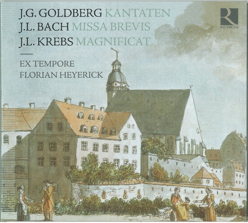 Laissons le génial Johann Sebastian Bach à ses cantates pour faire de la place à son neveu Johann Ludwig et à deux de ses élèves : Johann Gottlieb Goldberg et Johann Ludwig Krebs. Talentueux, Goldberg l'était tant au clavier qu'à la table. Dans les années 1740, le jeune homme avait suivi les leçons de Johann Sebastian qui l'encourageait dans ses premiers essais de composition. Les deux cantates enregistrées ici remontent à cette époque. Elles n'en sont pas moins remarquables par leur densité et l'énergie qui en émane. Johann Ludwig Krebs faisait partie des meubles dans la famille Bach. Brillant organiste, son goût tendait déjà vers la galanterie soutenu par une solide technique d'écriture. Le très doué Johann Ludwig Bach était cantor et professeur à Meiningen. Sa Trauermusik (réf. BB7108) témoigne de ce talent. Beaucoup de ses oeuvres vocales ont été longtemps attribuées à Johann Sebastian, gage de leur qualité. La Missa Brevis s'appuie sur la mélodie du choral Allein Gott in der Höh' sei Ehr, équivalent du Gloria dans la liturgie latine. Le motif est traité avec beaucoup d'esprit et de savoir faire, un vrai plaisir. Merci à Florian Heyerick et Ex Tempore de nous offrir cette découverte ! AG