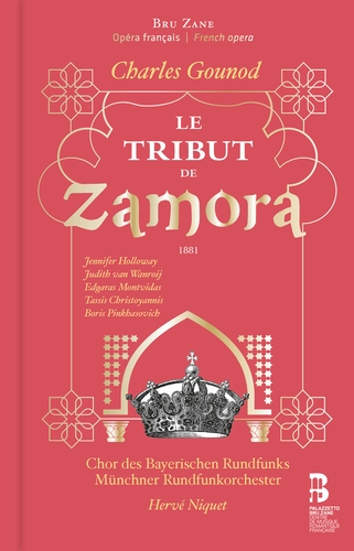 Oeuvre qualifiée de passéiste lors de sa création en 1881, Le Tribut de Zamora de Gounod recèle cependant bien des beautés et l'initiative de Bru Zane a toute sa raison d'être. Le découpage en numéros à une époque où la musique en continu à la Wagner voyait le jour a bien sûr joué contre cet opéra. Hervé Niquet dirige l'Orchestre et le Choeur de la Radio de Munich ainsi qu'une belle distribution vocale. Un pas de plus dans la découverte du répertoire français de la fin du XIXe siècle.