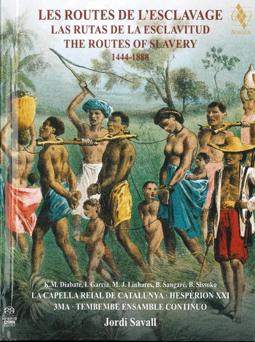 Enregistré en concert le 17 juillet 2015 à l'Abbaye de Fontfroide, Narbonne (France) dans le cadre du Xème Festival Musique et Histoire, ce superbe coffret multilingue s'accompagne de 2 cds et d'un DVD du concert filmé. Ce vaste projet faisant appel à divers interprètes venus de tous les horizons se veut un hommage à la mémoire des victimes de l'esclavage. Jordi Savall a rassemblé des musiques des trois continents impliqués dans la traite des esclaves africains et leur exploitation sur le continent américain.