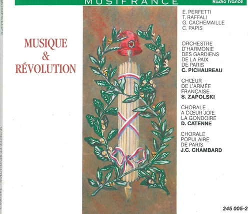 GOSSEC: Le chant du 14 juillet - Marche lugubre - La marseillaise - Hymne à Voltaire - L'Offrande à la liberte - Peuple, éveille-toi - Hymne à la nature - Te Deum et Domine Salvum - Hymne à l'Etre Suprême * CATEL: Marches militaires - Ouverture en ut - Hymne sur la reprise de Toulon - la bataille de Fleurus - Ode sur "Le Vengeur" * GIROUST: Hymne des Versaillais * MEHUL: Chant du départ - Hymne à la mémoire de Féraud - Hymne pour le fête des époux * CAMBINI: Ode sur Bara et Viala - Pas de charge républicain - Les Rois, les Grands ...* CHERUBINI: L'hymne du Panthéon - Pour la fête de la Reconnaissance - sur la mort du Gén.Hoche * GRETRY: Ronde pour la plantation de l'Arbre de la Liberté * LESUEUR: Hymne pour l'inauguration d'un Temple de la Liberté* PICCINI: Jymne à l'Hymen.*+ L.E. JADIN, H.JADON, DALAYRAC, M.J.GEBAUER, KREUTZER, A. REICHA