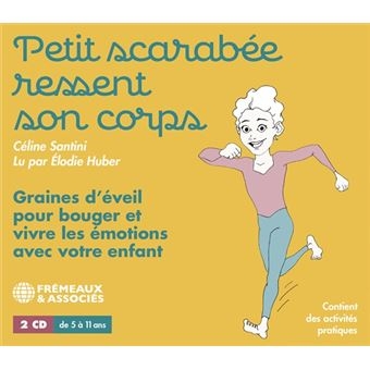 Petit Scarabée a parfois du mal à gérer toutes ses émotions. Il peut passer du rire aux larmes dans la même journée, et s'énerve parfois un peu... Ce n'est pas toujours facile, le quotidien d'un Petit Scarabée, entre les amis, l'école, la famille, les devoirs, les activités... Et toi, qu'en penses-tu ? Est-ce que ça t'arrive aussi de t'emmêler les pinceaux entre toutes tes émotions ? Tu vas voir, Petit Scarabée aime beaucoup bouger, courir, sauter... Il s'est aperçu que, parfois, il y a des exercices corporels qui aident à traverser ses émotions et à les transformer. Si tu le suis à travers ses aventures, il va te montrer comment apprendre à gérer ta colère, te revitaliser, te consoler, t'affirmer, écouter les messages de ton corps et faire le plein d'énergie ! Ça te tente ? À vos marques, prêts, partez ! Un double CD de 24 séquences pour les enfants de 5 à 11 ans pour découvrir ou approfondir la connexion au corps, et apprendre à se centrer, sentir ses limites, transformer ses ressentis et se ressourcer. Contient des activités pratiques. [www.fremeaux.com]