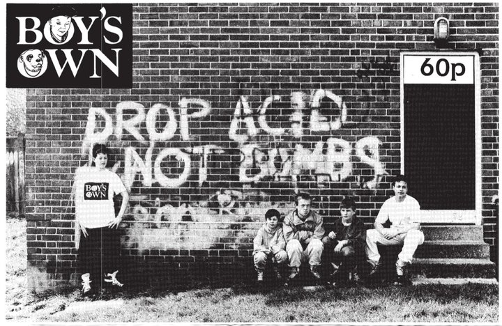 Andrew Weatherall (encore chevelu, non moustachu et mal fringué à l’époque) – qui, avec son complice Terry Farley du fanzine Boy’s Own (de 1986 à 1992, 12 numéros pour un total de 440 pages de musique, de mode et de foot, en argot et en noir et blanc, depuis l’épicentre de la scène house locale), fut l’un des premiers DJ des soirées Shoom et des soirées Future/Spectrum organisées par Oakenfold – se souvient de cette époque où le (futur) mouvement musical comptait à peine 150 ou 200 aficionados à Londres : « Shoom, ce n’étaient pas des soirées house, on y passait toutes sortes de musiques. »