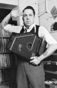 Sur l’une d’entre elles, le musicien est cadré au garde-à-vous, saluant de la main droite, et tenant, de l’autre main, un instrument à cordes frappées de la grande famille des cithares (cymbalum ? santour ?) sur la poitrine. Sur une autre, il est assis derrière un phonographe, un disque 78-tours posé sur la cuisse gauche. Une série d’images qu’on n’associe pas immédiatement aux clichés d’un musicien électronique d’aujourd’hui (DJ, remixeur, producteur puis auteur de ses propres compositions). Un look, une image publique de soi, par contre très proche de celle du rockeur rétro-primitiviste Billy Childish – dont Weatherall reprit d’ailleurs un morceau des Milkshakes sur la compilation de rock Sci-Fi Lo-Fi qu’il concocta amoureusement pour le label Soma Quality en 2007.