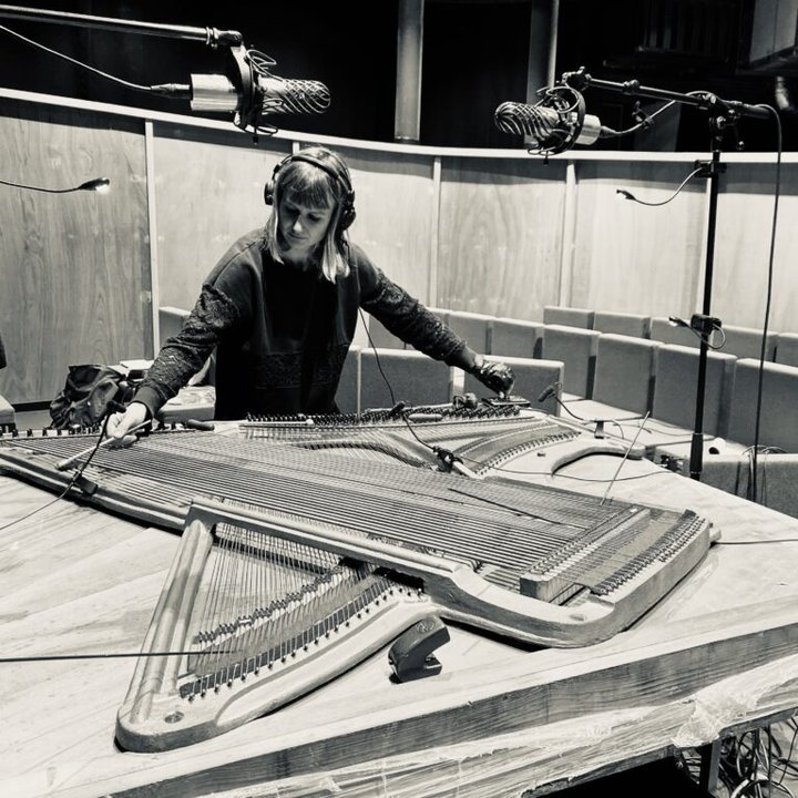 Une boite ! Une boite à cordes ! Avec des cordes de piano, et qui a été fabriquée par une personne qui construit des pianos, qui m’a beaucoup aidée à trouver des pianos pour répéter. Je l’ai rencontré dans un magasin de pianos, où il faisait son apprentissage. L’idée était très simple : trouver un instrument que je puisse porter, qui ne soit pas trop lourd. Il fallait qu’il remplisse la même fonction, avec une belle résonance, et qu’on puisse l’amplifier. C’est plus restreint, c’est moins joli, mais le besoin de trouver un piano à queue que je puisse utiliser à ma guise m’a souvent écartée de certaines possibilités de jouer, dans certaines salles, pour des raisons de place, d’argent… Donc il y a longtemps que je me disais qu’il fallait remédier à ça.