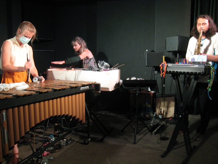 Hier, par exemple, j’ai joué avec Els Vandeweyer, qui est belge et vit à Berlin. Je la connaissais depuis longtemps, on a souvent été programmées dans les mêmes salles, mais jamais pour jouer ensemble. Là on a monté un trio pour l’occasion avec Johannes Schleiermacher, sous le nom de Muckla 3000. On a répété une fois et puis on s’est proposés pour jouer au KM28, en deuxième partie du solo que Els avait obtenu. On verra si on a d’autres occasions par la suite. C’est un peu toujours comme ça que ça fonctionne, il y a peu de groupes fixes, ce sont des rencontres. Il y a par exemple Andrea Ermke, qui joue avec des mini-discs. C’est une approche que j’aime beaucoup, très simple, loin du monde technologique. C’est sans artifices, elle connait ses sons par cœur. On a fait plusieurs concerts ensemble. Sinon, la plupart des concerts, ce sont des formations montées pour l’occasion, chaque soir, au gré des combinaisons diverses, arrangées par la salle ou par un musicien qui lance des invitations.