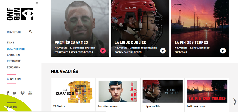De très nombreux films produits par l’Office national du film du Canada (ONF) sont en libre accès. On y trouve des fictions, des animations (pour jeunes et moins jeunes… comme celles de Norman McLaren, par exemple), des programmes interactifs à la pointe et… des films documentaires devenus des classiques de cet « autre cinéma ».
