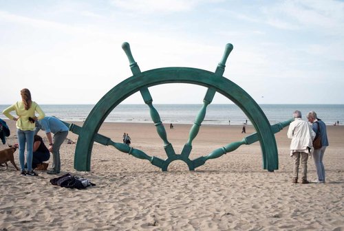 Lors de notre deuxième stop, c’est grâce à un amas de gens devant la maison communale de Koksijde que nous repérons l’œuvre d’art. Les badauds sont agglomérés autour d’une sphère composée d’objets métalliques et semblent complètement hypnotisés. La sculpture est signée Ryan Gander (EN), un artiste de renommée internationale et l’un des plus prolifiques de son pays.