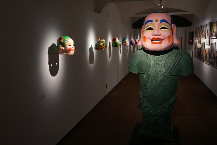 Un musée consacré au principe même du carnaval ou d’autres cérémonies masquées, qui est de se déguiser pour, provisoirement, revêtir une autre personnalité, juste pour la licence ou pour exercer d’autres fonctions, par exemple de guérison, est l’espace idéal pour questionner les questions d’identités qui peuvent secouer une société. La crise migratoire de ces dernières années et la peur avivée de l’étranger qui en résulte s’accompagnent d’une flambée de crispations identitaires. On assiste au retour des vieux démons et aux affirmations selon quoi l’identité est liée aux racines, au sol que les ancêtres nous lèguent et dont il faut préserver la pureté en fermant les frontières. C‘est dans ce contexte inquiétant que le couple artiste Benoît+Bo met en scène des identités fermes mais insaisissables, tangibles et mobiles, se jouant des frontières et des puretés en tous genres. Ils travaillent en se nourrissant d’une tradition très ancienne, chinoise. Ils l’interprètent du seul fait de leurs subjectivités respectives qui interagissent : un des artistes est bien chinois, l’autre pas. Ensuite, ils la confrontent et la rendent perméable à toutes les cultures mondiales imaginables, plus exactement à la culture de la mondialisation. Au vu de leurs déplacements à la surface du globe, on peut les considérer comme des artistes migrants, au sein des flux de la globalisation économique. Ils expérimentent ce paradoxe relevé par l’anthropologue Michel Agier entre, d’une part, une mobilité mondiale très valorisée, celle du monde des affaires, et une autre, très dévalorisée, qui concerne ceux et celles qui se déplacent par contrainte (les réfugiés), impactés par le monde des affaires ! Ils expérimentent les formes mutantes d’un monde mobile. En y déplaçant des formes fixes – leurs masques, leurs têtes joyeuses, leurs dispositifs artistiques – et en stimulant, à partir de ces objets statiques, tout ce qui bouge, tout ce qui diffère en chaque lieu, à partir du vécu des gens et qui, en retour, va altérer et colorer autrement leurs œuvres et leur manière de réactualiser des formes traditionnelles. Ils s’inspirent d’existences très locales – existences de personnes, de choses, d’animaux, de plantes – tout en participant aux circulations de la mondialisation dont, d’une certaine façon, ils produisent une ethnologie critique. Ils se déplacent beaucoup, multiplient les enracinements provisoires dans des lieux très divers de l’Orient, de l’Occident, avec une affection particulière pour les lieux hybrides, ce que Michel Lussault appelle des hyper-lieux.