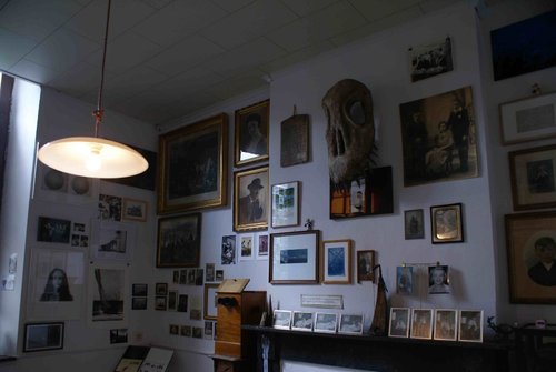 C’est le départ de la biennale de photographie « Rêver au cabinet ». Une antichambre tapissée d’images et d’objets trouvés, collectés par plusieurs personnalités (convergences, divergences de focales). Cartes postales, dessins, gribouillis, portraits de famille, écritures intimes, références à des imaginaires iconiques quasi universaux mais ici relocalisés, « re-particularisés ». Ce cabinet de curiosité se trouve en correspondance avec d’autres points importants du parcours construit par le Centre culturel de Marchin : notamment, dans le village de Tahier, les résultats d’un atelier photo et de création de livres. Des essais sur des tables. Des photos dupliquées, pliées, assemblées, mises en page. On entre dans les pièces de la ferme, son décor, son mobilier utilitaire, ses toiles d’amateur et l’on découvre, sur les tables, les traces d’un travail individuel et collectif intense. Une dizaine d’individus, rassemblés pour cet atelier, ont travaillé, pris des photos, seuls et forcément un peu ensemble, reliés par la logique d’atelier, avec des conversations, des consignes. Et puis, il y a eu l’autre versant, comment travailler avec ce matériau photographique, comment les sélectionner, avec quels critères, pour raconter quoi, et comment les organiser en format livre, libre, qui fasse récit ? Les résultats, qui sont des ébauches, des ouvertures, témoignent de la richesse des échanges et des processus expérimentés. Ensuite il y a, au long du parcours, deux bornes où, selon des appels à participer, de nombreux photographes amateurs et professionnels donnent leur vision du rêve, ce qu’est une image de rêve, une image du rêve. Et ainsi, ce qui est présenté physiquement dans les divers lieux d’exposition se trouve replacé dans un flux continu d’images, comme sans fin. Dans lequel, chacun peut reconnaître des représentations ressemblant aux productions de ses propres tissus oniriques, comme appartenant à la même famille. Et cela contribue à ce que le visiteur, aussi promeneur – flâneur des campagnes – se trouve beaucoup plus ancré, impliqué dans l’ensemble de ce qui est exposé dans cette biennale 2017 sous la thématique « Rêver ». Il s’y reconnaît et, à la fois, s’y perd, rencontre de multiples points où ce qui est familier, devient soudain différent, voire inconciliable, ce qui ne peut qu’ouvrir de nouveaux espaces vierges, un appel à explorer, à regarder l’inconnu, retrouver un œil dépaysé.