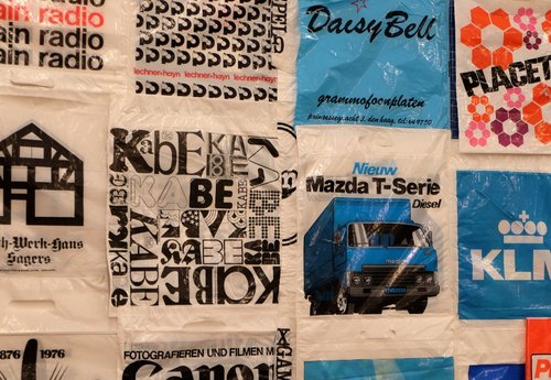 C’est à l’écart du hall d’exposition principal de la Fondation Verbeke, à l’entrée de l’espace assez discret de la galerie des collages, qu’on tombe sur une série de sacs plastiques exposés aux cimaises et sous vitre. Une poignée d’adolescents échappés d’un groupe scolaire ne s’y attarde pas et rebrousse vite chemin. On pourrait presque leur emboîter le pas, mais, au-delà d’une première impression teintée de banalité, quelque chose nous pousse à ne pas abandonner tout de suite, à poursuivre la visite un rien plus loin. Et petit à petit, la quantité semble se muer en qualité et la persévérance et l’endurance se teinter de sens. Notre attention est captée par une photo, à la fois très belle et très modeste, exposée en vitrine dans un tirage aux coins qui rebiquent : une jeune femme qui lit devant un mur où sont accrochés un tableau carré et un sac plastique. On pense aux années 1980, mais la légende fait voler en éclats notre hypothèse : « Den Haag, 1965 ». L’artiste exposé se nomme Bob Lens (La Haye, 1939) et il travaille donc depuis plus de cinquante ans sur cet objet banal, léger, a priori insignifiant, sans valeur marchande, passant de mains en mains, etc. – mais aussi sur cette incarnation à la fois symbolique et ô combien réelle et non biodégradable de la société de consommation, du gaspillage et de la pollution. Bob Lens a porté le sac plastique sur lui comme vêtement, l’a fait voyager, l’a proposé dans un réseau de mail art, en a fait le décor d’une chorégraphie… mais, surtout, il l’a collectionné et exposé. Et, last but not least, il l’a pensé. Dans son « PT-Art-Manifest » (manifeste de l’art du sac plastique) de 1982, il développe le concept de « kringloopskulptuur » (qu’on pourrait traduire par sculpture-cycle, dans une idée de boucle et de recyclage [1] , associée entre autres à la figure de l’ourobouros, le serpent qui se mord la queue). Dans une sorte de prémonition de la dimension planétaire de la pollution (on n’est ni dans l’expression d’un constat univoque ni dans une dénonciation) pollution surtout marine, induite par l’accumulation des sacs plastiques, Lens affirme dans ce même manifeste que la sculpture ne se réduit pas à l’un ou l’autre sac remarquable, mais est constituée par l’ensemble de tous les sacs plastiques du monde et par la manière dont ils circulent. Plus récemment, dans un contexte plus lucide quant à la face sombre de leur usage, l’artiste a lancé deux projets – à la fois presque opposés et totalement complémentaires – liés aux messages textuels, à la propagande consumériste que les sacs colportent : l’un censurant par de gros aplats noirs les messages typographiques de sacs existants ; l’autre réduisant les sacs à un pur support de mots-clés (« Ego », « One Size », « Das Sichtbare », « Substance », etc.) imprimés noir sur blanc dans une typo unique et rigoureusement efficace.