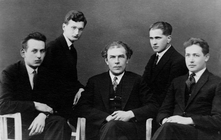 Group portrait of Estonian composers (left to right) Eduard Tubin (1905–1982), Olav Roots (1910–1974), Heino Eller (1887–1970), Karl Leichter (1902–1987) and Alfred Karindi (1901–1969) from the Tartu school of composition
