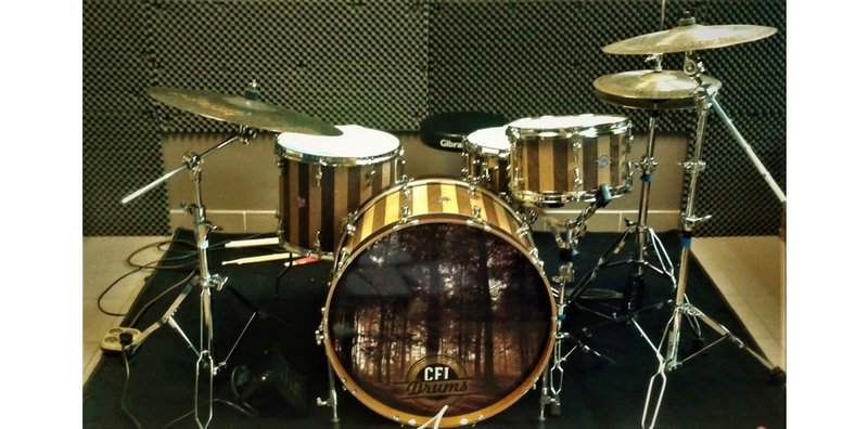 Sa méthode de travail est également particulière. La plupart des fûts de batterie sont construits en pliant de longues feuilles de bois, collées en plusieurs couches successives; ceux de CFI Drums sont réalisés selon une technique plus rare qui consiste à assembler de multiples « gouges », des lattes de bois collées bord à bord pour constituer une forme qui est ensuite arrondie par rabotage et ponçage. Le résultat est un instrument à la section plus importante (environ 19 mm contre 4 à 8 selon la méthode classique), plus solide et surtout avec une projection de son plus ample. La fabrication d’une caisse claire peut prendre un certain temps et doit se planifier en tenant compte du séchage et du repos du bois qui continue à travailler quelques mois avant de pouvoir être utilisé. Lorsque le client a choisi les essences de bois qui composeront sa batterie, il peut ensuite décider de son accastillage, c’est-à-dire l’ensemble des pièces, généralement métalliques cette fois, qui le complèteront. Cerclages, tirants, déclencheurs et timbres sont importés d’Allemagne et donne à l’instrument son style final. Celui-ci peut ensuite être verni, ou peint, même si la plupart des acheteurs préfèrent garder la superbe teinte naturelle des bois.