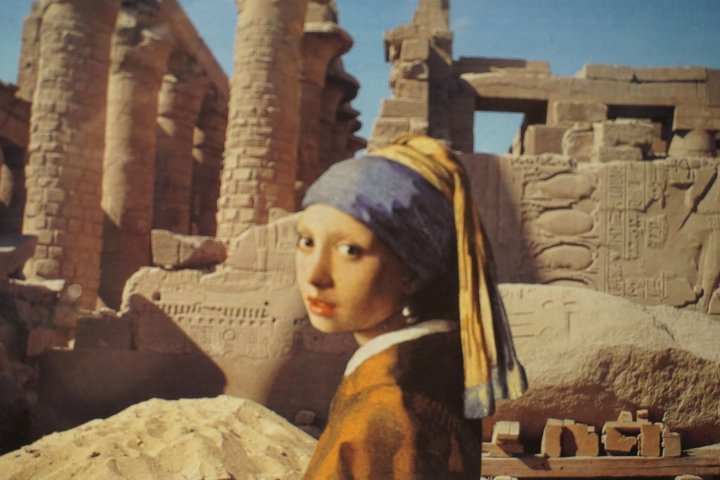 Les interventions de François Liénard – plutôt des commentaires – perturbent la vision linéaire de l’histoire. Puisque, par le choix de ce qu’il conjoint, en recourant aux ciseaux et à la colle, il fait se rencontrer des époques différentes, des typologies issues de temporalités multiples, il croise des traces et rémanences de cultures différentes, il confronte des manières de vivre l’art convergentes à travers les siècles, et parfois antinomiques, productrices de collisions explosives. Prenez la jeune fille à la perle de Vermeer découpée sur fond de ruines antiques, le tout réuni sous l’intitulé L’Éternelle Jeunesse, et faisant apparaître, par la force de ce mariage paradoxal entre la fragilité à l’avant-plan et les décombres sublimes à l’arrière-plan, ce qui dans la création d’art et de culture, à travers les siècles, de génération en génération, régénère le beau, l’espoir de formes qui donne sens à la vie.