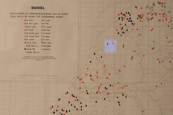Pour le moment – jusqu’au 27 mai 2018 – dans le même type d’approche que la splendide expo Donkere kamers (sur la dépression et la mélancolie) en 2015, l’expo Angst aborde, à la croisée des arts d’hier, d’avant-hier et d’aujourd’hui, « l’angoisse [qui] règne sur le monde ». L’exposition associe – malheureusement en deux espaces séparés ; on aurait sans doute préféré voir les deux univers dialoguer et se répondre – l’imagerie populaire des siècles précédents (images d’Épinal, gravures de rêves cauchemardesques, costumes traditionnels de fêtes païennes, cartographie des croyances paysannes, objets vaudou et statuettes kafiledjo – « celui qui dit la vérité » en Côte d’Ivoire, etc.) et art contemporain.
