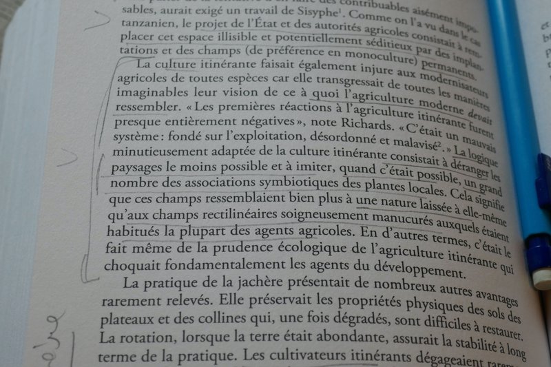 Un autre exemple décortiqué est la « villagisation forcée en Tanzanie », dans les années 1970. Son présupposé d’origine coloniale est que le cultivateur africain est dépourvu de savoirs et qu’il est indispensable d’importer les préceptes de l’agriculture industrielle occidentale. Il s’agissait de remplacer « les rythmes de travail décousus et autonomes des cultivateurs traditionnels » par « la discipline stricte et interdépendante des usines ». Tout doit être organisé, par exemple, pour adapter le paysage et l’organisation paysanne à l’usage du tracteur, symbole de l’exploitation agricole modèle. L’objectif étant toujours de mettre en place une production intensive comme préalable à une vie plus agréable pour le plus grand nombre. La villagisation se voudra d’abord paisible, comptant sur l’engouement naturel des populations. Devant la résistance rencontrée sur le terrain, elle s’appliquera de façon militaire, violente, déplaçant des millions de personnes, décidant de la création de villages selon des critères « esthétiques » (bien alignés, comme des casernes, le côté quadrillé et rectiligne étant compris comme la base de tout bon fonctionnement rationnel). « Les planificateurs pensaient que le choc engendré par des réimplantations menées à vive allure aurait lui-même un effet bénéfique. Il arracherait la paysannerie à son environnement traditionnel et à ses réseaux et la projetterait dans un cadre nouveau où, était-il espéré, ses membres pourraient plus facilement être remodelés en producteurs modernes aptes à suivre les instructions des experts. » (p.352)