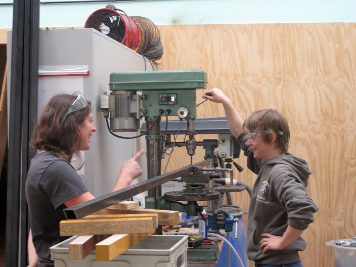 Dans la logique de la philosophie du collectif qui ne fige pas ses participantes et participants dans un seul rôle (administratif, pédagogique, etc.) et qui associe constamment réflexion et concrétisation, ce sont en grande partie les membres du groupe qui, formés à la soudure dans un fablab du quartier du canal à Bruxelles, ont soudé un mois durant les cadres métalliques de la nouvelle version du musée. « C’est aussi une manière de se prouver qu’on peut changer les choses – la notion d’empowerment en anglais, même si le mot en soi n’est pas très beau – si on dépasse les freins qu’on se met trop souvent soi-même (‘Il faut être soudeur pour souder’ par exemple). (…) ça, cette version actuelle, c’est ce que nous appelons le Musée nomade. Mais nous avons aussi, à plus long terme, le projet d’un Musée mobile : une sorte de camion, de roulotte qui transporterait notre musée – ou un autre outil capable de susciter la même réflexion – partout en Belgique, voire ailleurs en Europe. »