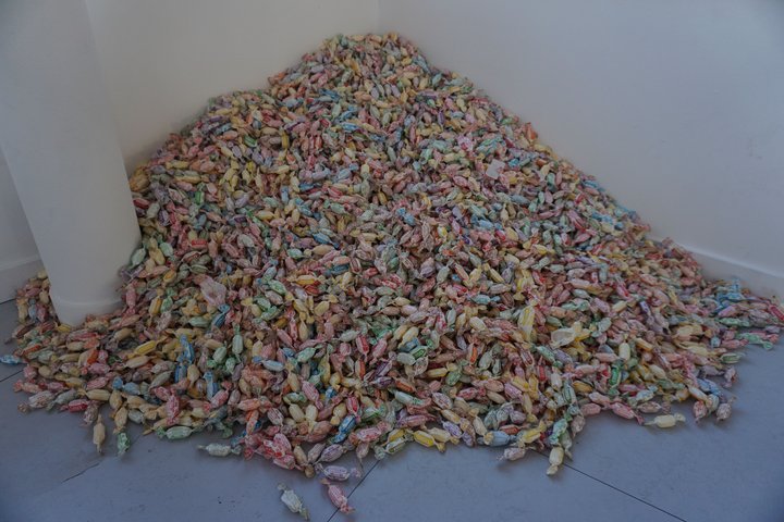 La scénographie et le propos, inspirant diverses méditations subversives, remuent, malaxent, fermentent diverses conceptions de transmigrations corporelles entre les êtres. Au-delà d’être un corps, d’avoir un corps à soi, comment s’articule-t-il à d’autres, comment se construit-il avec d’autres, comment participe-t-il à la vie d’autres corps ? C’est calmement, presque sans en avoir l’air, par infusion dans l’atmosphère, que l’on chemine dans ce qu’articule le titre de l’exposition. « Ceci est mon corps » rappelle le cannibalisme christique qui structure l’héritage culturel judéo-chrétien et que détourne Felix Gonzalez-Torres dans « Untitled (Ross) », un tas de bonbons du poids de son amant mort du sida, et que chaque visiteur·euse peut prendre, déballer, mettre en bouche, sucer, faire disparaître en lui·elle. Communier. « My Body Is Your Body » renvoie aux recherches singulières d’Ernesto de Sousa et suggère plus largement, en même temps que le rejet de la transcendance religieuse, une démocratisation de ce que sont les corps comme source identitaire. Ils sont tous au même niveau, tous faits de la même matière, tous égaux. Enfin, « My Body Is The Body of The Word », selon une expression de la poétesse Tomaso Binga, libère le corps et les consciences que nous en avons de tous les conditionnements, le place au niveau du langage, labile et mobile comme lui, et ouvre à toutes les expériences éclatées de la modernité, jusqu’aux confins de cette question de Donna Haraway, citée par la commissaire : « Pourquoi nos corps devraient-ils s’arrêter à la frontière de la peau ? »