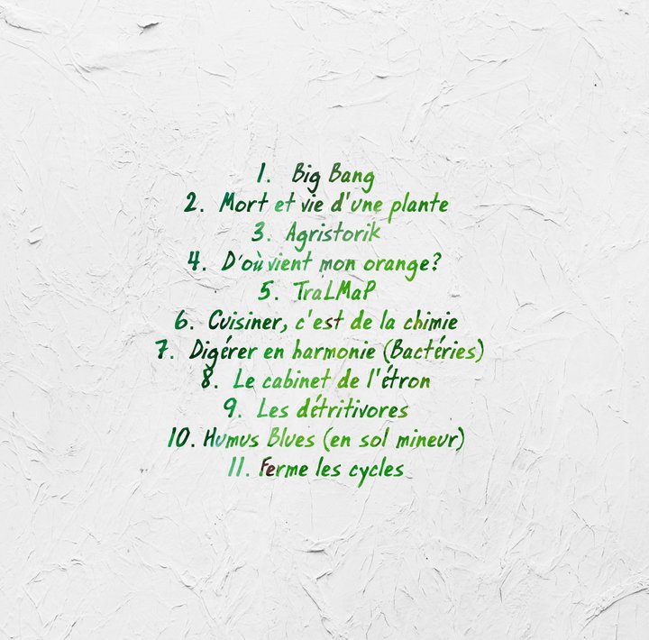 Profitant de l’appel à projet Sciences Mundi d’Innoviris, l’Institut Bruxellois pour la Recherche et l’Innovation, le groupe saute sur l’occasion pour donner une nouvelle dimension à leurs chansons et compose 11 chansons pour décrire le cycle de la matière organique.