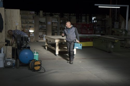 À gauche, le geste du travail du soudeur. À droite, insaisissable, la détermination d’un homme à l’origine d’une coopérative ouvrière mise sur pied après la délocalisation d’une multinationale ayant occasionné une vague de licenciements.