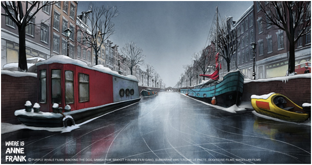 > Sur ces deux longs-métrages, je faisais partie de l'équipe chargée de mettre en couleur les décors au sein du studio Doghouse, à Differdange. Pour ce genre de projets, qui se basent sur des lieux réels («Fritzi» se déroule dans le Leipzig de 1989 et «Where is Anne Frank» dans la ville d'Amsterdam), le réalisateur et son équipe se rendent en général sur place pour prendre un maximum de documentation et de photos afin d'être le plus fidèle possible à la réalité. Dans le cas de « Fritzi », qui se déroule pendant la révolution du peuple allemand et la chute du mur de Berlin, nous pouvions nous reposer sur de nombreuses vidéos et documents, ça facilitait pas mal la tâche!