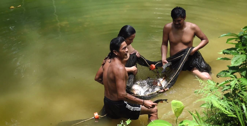Le film s’ouvre avec de très belles images de paysages accompagnées d’une voix off qui raconte l’arrivée des premiers hommes blancs dans un village Yanomami, apportant avec eux de nouvelles maladies et un mépris terrible. Au-delà de l’exploitation économique du territoire, le film dénonce l’éradication de l’altérité et de la diversité, sous-tendue par un rapport de domination qui a débuté il y a près de 500 ans. Les réalisateurs interrogent ainsi les fondements de la culture occidentale qui a conduit à coloniser puis à asservir ou à détruire des terres considérées comme vierges et des hommes considérés comme inférieurs ou à éduquer. La colonisation, faisant peu de cas des pratiques et des croyances existantes, plaque brutalement sur ces paysages des valeurs nouvelles. Ainsi, certains territoires sont menacés par la construction de routes, là où auparavant, seule la rivière s’offrait en voie de circulation. Des procédures et des textes s’imposent en lieu et place d’occupation séculaire des terres. Des communautés qui vivaient jusque-là correctement se retrouvent plongées dans la violence et la pauvreté, considérées comme sans droits et menacées par des expulsions, des persécutions et des massacres : « …beaucoup de manques, de tristesse et de honte ». La douleur vient non seulement du quotidien mais aussi de la projection dans le futur : ce que les familles se préparaient à transmettre à leurs enfants n’est plus : « se faire expulser de son territoire, celui qui nous a été transmis et que l’on se préparait à transmettre à ses enfants, c’est douloureux ».