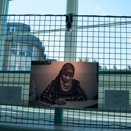 À droite, la photographie est signée Virginie Nguyen. Elle portraiture l'une des participantes de Gaffi asbl, un groupe d’animation et de formation pour les femmes immigrées visant à leur donner les clés nécessaires pour entamer une formation ou la recherche d’emploi.