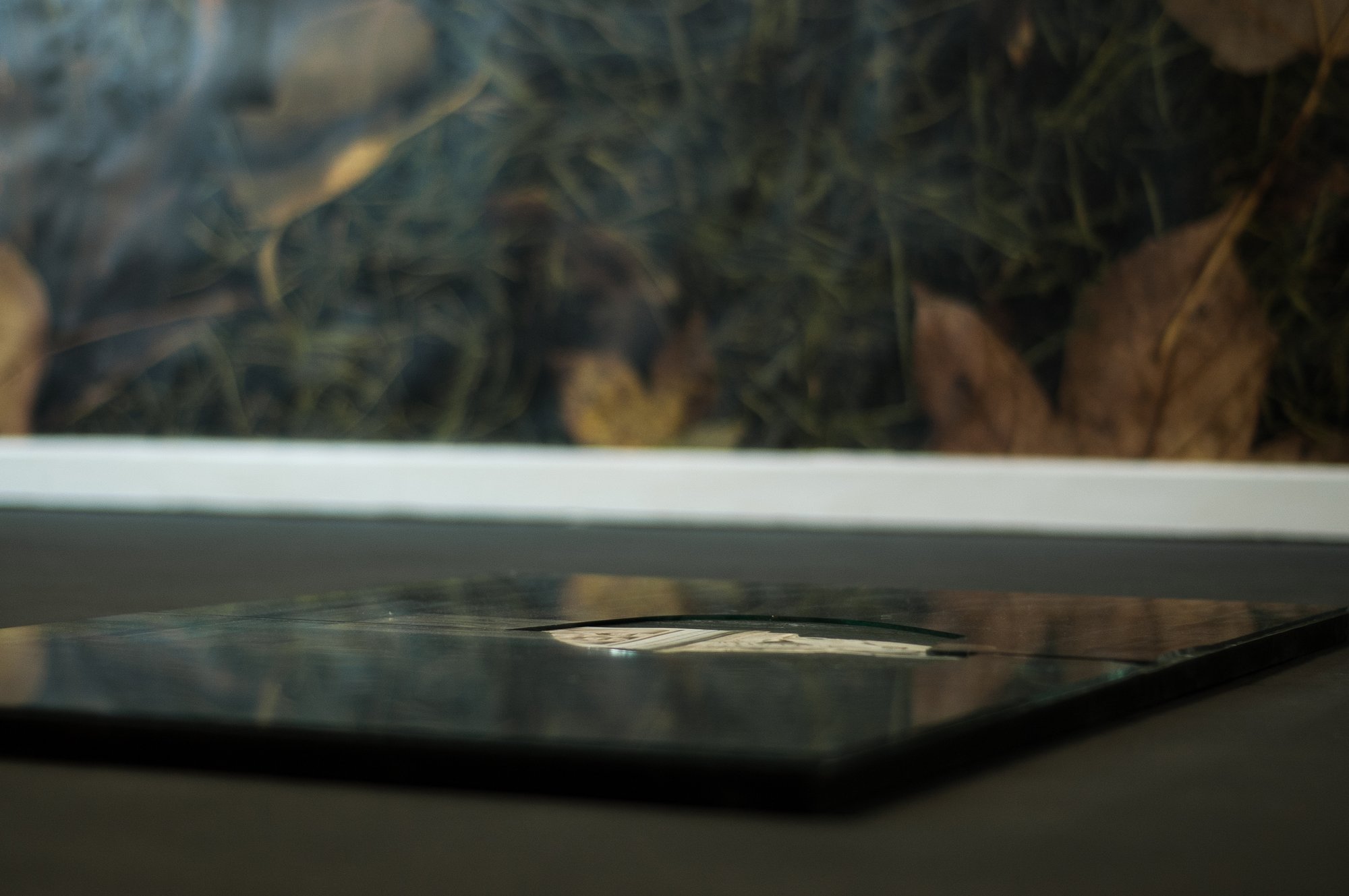 plaque de verre sur laquelle a été gravée le plan du fort où le jeune homme a