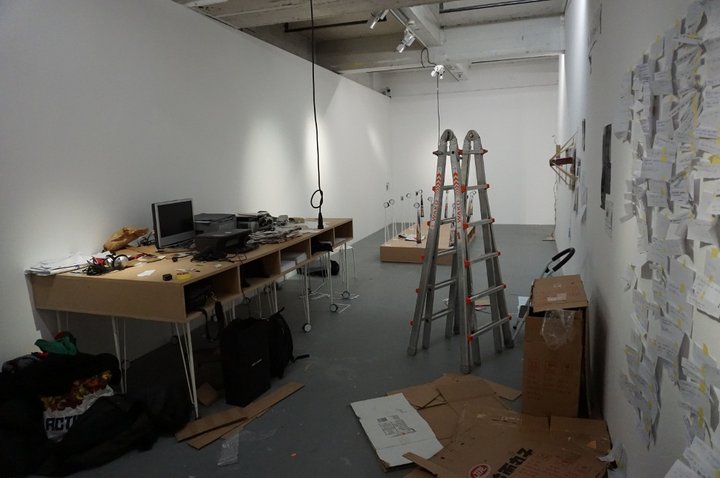 Avec tous les créatifs post-soixante-huitards qui ont infiltré les méthodes de management et la créativité entrepreneuriale, célébrer Mai 68 aujourd’hui coïncide parfois avec l’apologie de l’entreprise capitaliste ! Mais ce n’est pas de ça que l’on parle à La Centrale. Résistance reprend le fil d’un imaginaire qui s’est ouvert à un certain moment, de manière multiforme, sans être l’apanage d’une classe, d’un style, d’une profession. Quelque chose qui a éclaté et a continué. L’exposition, plutôt que retracer une histoire linéaire, restitue une dynamique, trace des lignes de tension entre les années 1960 et aujourd’hui. La spatialisation de l’ensemble qui grouille, là, donne envie de se jeter à corps perdu, à l’instinct, et d’initier des trajets, d’un point précis, au début, à cela qu’on aperçoit à la fin du parcours, progresser en diagonale, en déplacement latéral, d’avant en arrière, en lignes brisées, en zigzag. En s’avançant - et avant même que le regard embrasse la nef un peu folle de réunir ces œuvres qui, d’une manière ou d’une autre, ont dérangé, dérangent ou proposent un dérangement -, on jette un œil à droite sur un espace d’atelier accueillant des étudiants artistiques. Une installation en soi. L’impression que c’est en train de se faire, que ça se passe à l’instant. Le dispositif, décidément, n’a rien de passéiste.