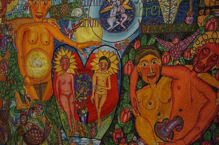 Dans les affiches d’époque, le pouvoir de l’argent est toujours montré du doigt. Cela vous conduit à la vidéo d’Aernout Mik, gros plan fictionnel sur les premiers instants qui suivent l’ultime crash boursier, dans l’enceinte même des traders. En fait, la ligne qui va de l’image genre « à bas le patronat » à ce film de dépression radicale qui frappe ceux et celles qui incarnent la spéculation, laisse entendre que, finalement, le krach est permanent et le show continue pour qu’on continue à croire que. De la même manière, plusieurs courants alternatifs vont de l’ancien au nouveau et illustrent la façon dont l’art se métamorphose pour coller aux problématiques à cerner. Les revendications de libération sexuelle et d’égalité entre les genres, autant dans les jeux de l’amour que dans les institutions sociales, étaient très fortes. Elles sont accompagnées, aujourd’hui, avec une forte présence des Guérillas Girls, dont l’activisme actuel, via des bâches, des vidéos, des restitutions d’interventions, est mis en écho avec une simple vidéo où Valie Export invente un langage gestuel. Cette place du sexuel dans l’esprit 68 donne lieu aussi à une magnifique présence d’Helga Goetze, artiste renommée de ce que l’on appelle l’art brut, qui a milité pour que l’on enseigne l’amour, la science du plaisir et qui a brodé d’incroyables imageries sexuelles, véritables cosmogonies où elle donne sa vision de la manière dont les différentes civilisations ont organisé, maîtrisé et réprimé les corps et, aussi, malgré elles, provoqué des échappées qui ont permis de laisser libre corps aux fantasmes libérateurs.