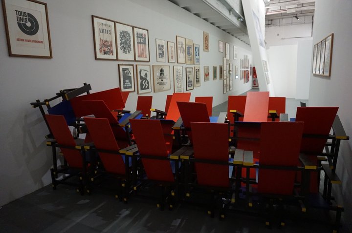 L’espace muséal est d’emblée barré par une barricade de fauteuils en provenance d’une salle de spectacle (Luc Deleu & T.O.P. Office). Au bout du parcours, un film restitue une performance d'Emilio López-Menchero construisant une barricade en plein Louvain-la-Neuve. « Lâchez votre brol pour construire une barricade ». Habillé en Tchanchès, accompagné de deux ou trois assistants en bleus de travail, poussant des charrettes, il harangue les citoyens. Il les invite à se débarrasser de leurs encombrants et poubelles. Il rassemble le tout en barricade bricolée qui obstrue le passage. Là, en plein quotidien, quelle merveilleuse occasion de voir, entendre, étudier la réaction des gens d’aujourd’hui quand l’art moderne perturbe leur quotidien ! Une pièce d’anthologie. Pourquoi vous faites ça ? « Pour arrêter. Arrêter pour arrêter. Juste pour être contre. Contre tout. Arrêter qu’on oublie plein de problèmes. Ca suscite pas mal d’indifférence. Puis quand la barricade est érigée et rompt la fluidité urbaine, ça crée de l’intérêt timide, amusé, intellectuelle, d’étranges empathies, beaucoup d’incompréhension, de la violence, de l’agressivité.