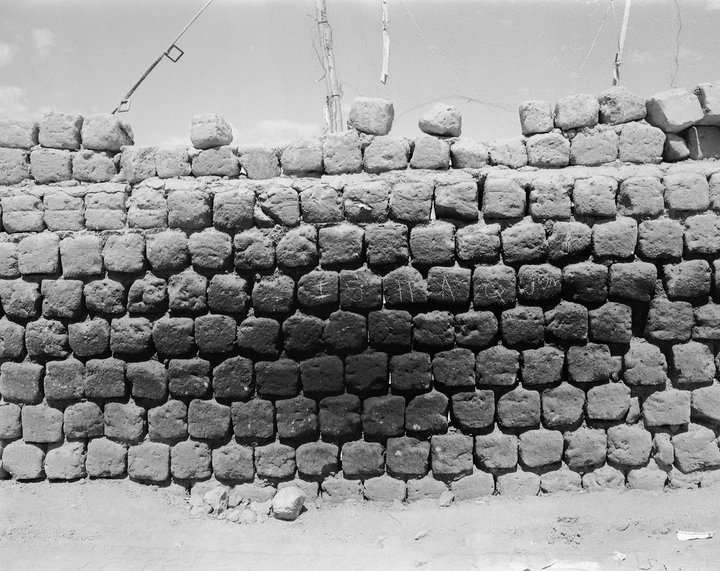 Il y a ce plissé merveilleux, somptueux, sans âge. Gros plan. Pierre ou tissu ? Antiquité ou parure moderne ? Suaire ou voile vivante ? Chevelure ou ruissellement paralysé ? En une image, les plis matriciels de Deleuze/Leibniz. C’est un morceau de ces parachutes militaires qui, suite aux aléas de la guerre, se récupèrent dans les montagnes et sont recyclés en toile de tente. La matérialité de l’image, du tirage, indique assez que l’artiste a dormi sous ces abris, il en incorporé le plissement céleste et aride. Voyez cette étendue de pierre, sèche, page blanche calcaire où rien ne s’écrit. Quelques vies disséminées, juste posées, pétrifiées. Près du cadre, au-delà d’une clôture, des baraques, des maisons, un autre pic rocheux. Possibilité d’évasion. Voyez aussi cette surprenante baraque de tôles. Elle ne parvient pas à occulter l’étendue infinie derrière elle. Au contraire, il semble que ce soit en elle, dans ses entrailles archaïques, que se fabrique cet horizon sans fin de nuages, crêtes vertigineuses, neiges étincelantes, vallées successives. C’est le centre d’accueil d’un camping haut perché du Ladakh. Il faut rester vigilant aux incidences qui surgissent sur les bords de la photo. Il s’agit souvent d’une configuration imprévue, non identifiée consciemment lors du cadrage, et qui amorce le lien avec d’autres fils narratifs. Ainsi, à quoi correspondent les mâts, filins, infrastructures au-delà de ce mur ? Ou les solives de guingois, l’étoupe stellaire d’une étoffe perdue, l’irruption d’un circuit électrique insolite, faisant raccord avec le hors-champ ?
