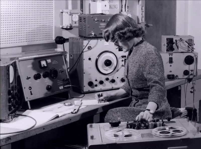 Lisa Rovner entame son film avec la situation de l’immédiat après-guerre et rappelle le rôle que les femmes avaient joué durant le conflit, remplaçant les hommes absents dans les usines, dans les bureaux, acquérant des connaissances et des compétences qui leur étaient refusées jusque-là. On sait que cette situation n’a pas duré et que la domination masculine s’est rapidement réinstallée, mais le système n’est jamais pour autant entièrement revenu à la situation d’avant. Parmi les lieux où les femmes ont pu occuper des postes-clés ou des postes techniques, la radio a été un exemple important d’un environnement mêlant créativité et technologie. Le travail avec les machines et l’inventivité dans leur usage est au cœur du premier exemple exposé par le documentaire. Aujourd’hui reconnu comme un laboratoire de création, un vivier d’imagination, le BBC Radiophonic Workshop est un cas d’école dans l’évolution des musiques électroniques. Comme presque toutes les autres situations citées par la réalisatrice, il a fonctionné en marge du système et en dehors des filières musicales reconnues. On le verra par la suite, c’est un des traits qui relient les deux histoires parallèles du film, l’électronique et les femmes.