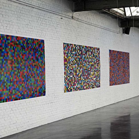 Les similitudes entre sa démarche musicale et sa démarche plastique ne se limitent pas à cette exigence. Il utilise des techniques algorithmiques de composition similaires en vidéo et en peinture, comme il le fait en musique. Il réalise des partitions qui s’adaptent d’un médium à l’autre. « Les calculs sont souvent assez compliqués avec la technique du phasing, ou plutôt du micro-phasing. Elle se calcule en fraction de secondes. Les samples, la composition, se déforme au fil du temps, mais des aberrations digitales apparaissent également et il faut les corriger. »