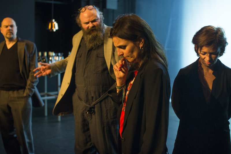 Après nous avoir accueillis sans formalité, les acteurs se demandent comment ils sont arrivés là ? Ils se posent la question de la présence de chacun dans cette salle noire. Un lieu indéfini et sans fenêtre qui tient plus de l’imaginaire que du réel. Sorte de vision d’après la mort où nous allons tous ensemble rester là… Pour toujours ? Sommes-nous donc tous en deuil ?