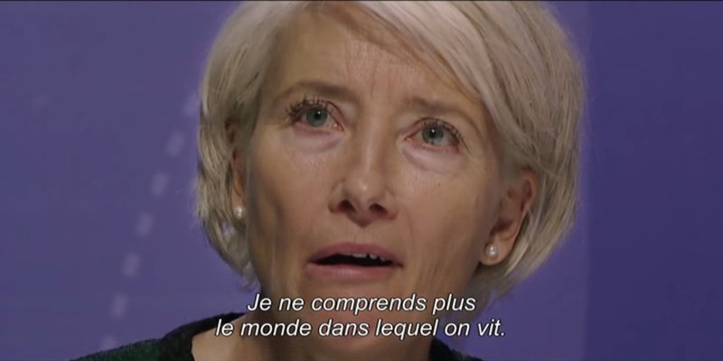 Le deuxième fil est tout autant d’actualité, sinon plus : tout au long d’une période de onze ans, nous suivons l’ascension de Vivienne Rook, une politicienne britannique (jouée par Emma Thompson). Mélange de Donald Trump, Boris Johnson et Marine Le Pen, sa carrière de leader populiste est propulsée par ses déclarations fracassantes dans les médias et ses bourdes qui, comme les modèles précités, font dire au public qu’elle « dit ce qu’elle pense », une recette de charlatan démagogue dont l’efficacité n’est plus à prouver. Plus elle dit ce qui ne se dit pas, plus son langage se défait des artifices de la bienséance, plus elle donne l’illusion d’un projet de bouleversement révolutionnaire. Ses sorties racistes, ses propos xénophobes et sa petitesse mesquine sont interprétés comme autant de preuves de sa différence radicale, de son autonomie.