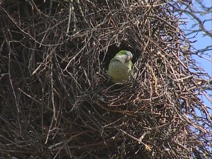 Une perruche d'Amérique du sud... Place Guy d'Arezzo à Uccle (Une pincée de plume, 2000)